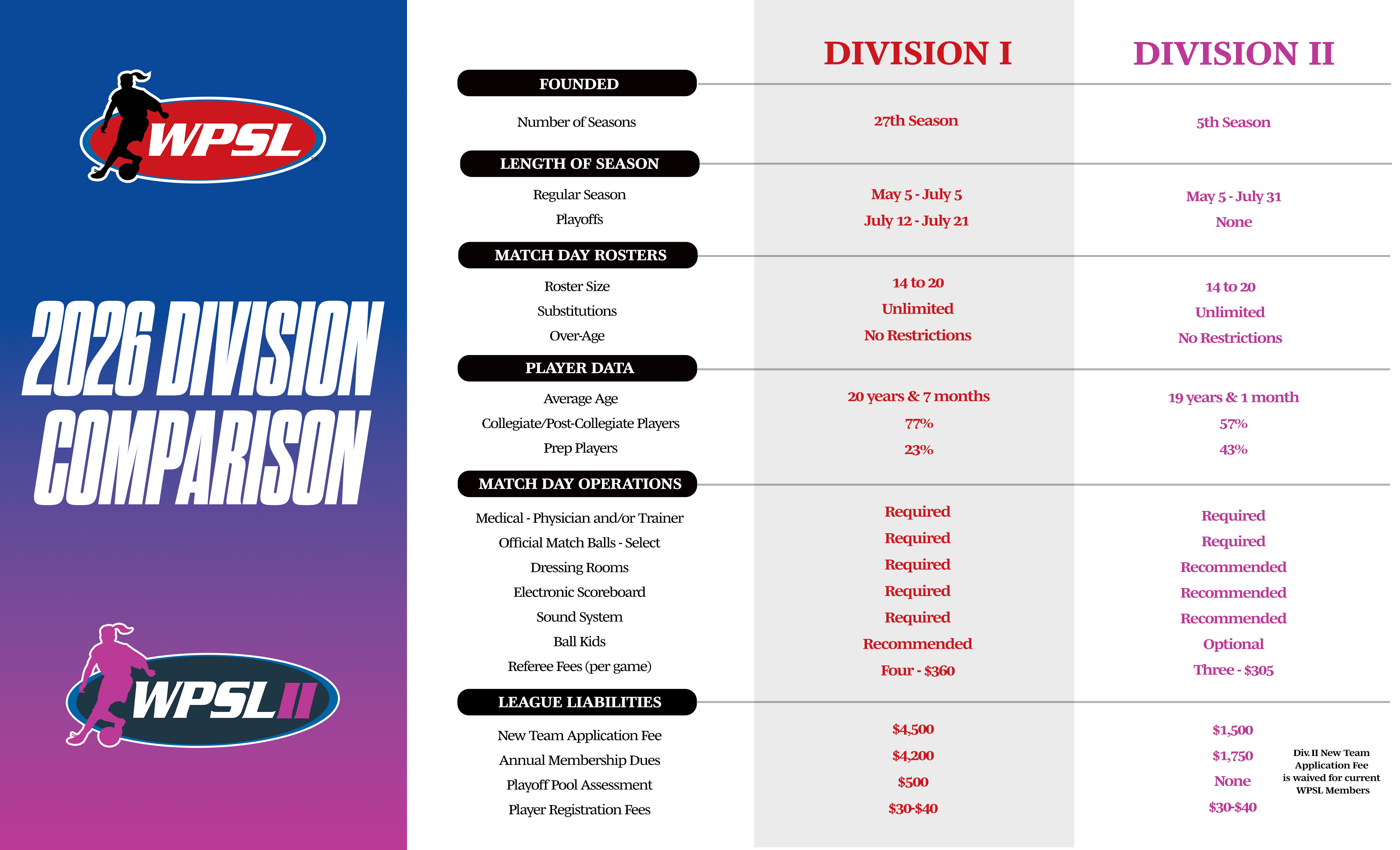 For more information on WPSL Division II or how to submit an application contact Deputy Commissioner, Matt Homonoff - (703) 244-3895 or mhomonoff@wpslsoccer.com