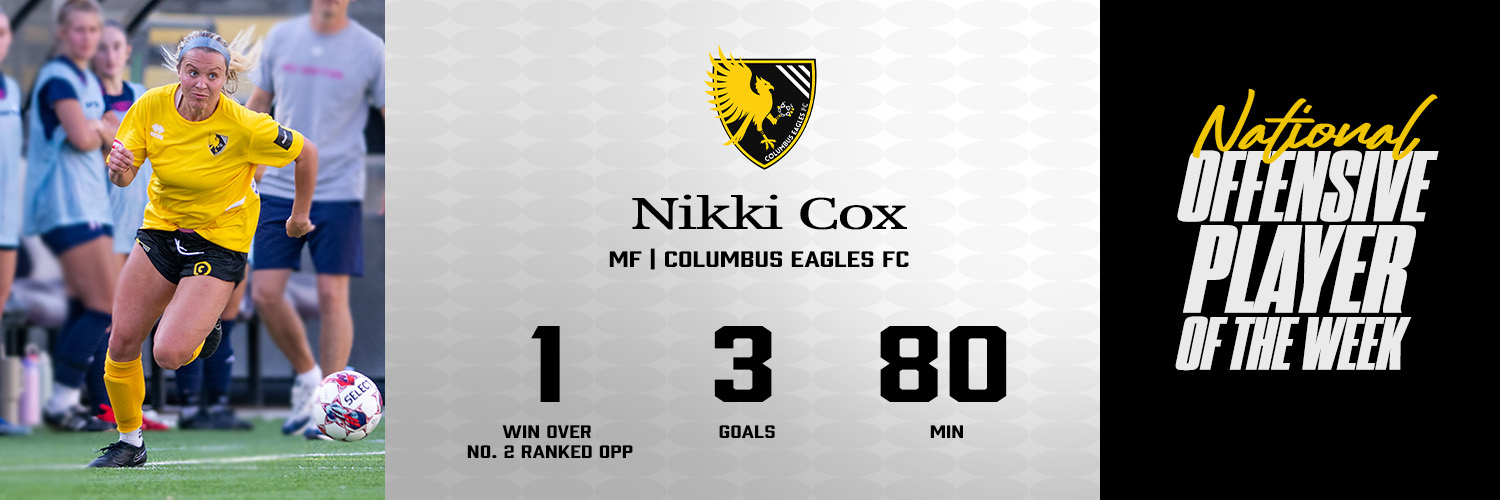 In the biggest upset in the season so far, Nikki Cox tallied a hat trick in the Columbus Eagles FC’s 4-1 win over nationally ranked (2) FC Dayton. With goals in the 38’, 41’, and 57’, the Bowling Green alumna and Eagles veteran was credited with a relentless determination in front of goal that changed the face of the game. Cox played collegiately at Bowling Green University from 2018 through 2021. In 2024 Cox led the Great River Division with 10 goals, earning Player of the Week Honors during matchweek one.